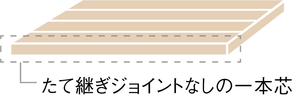 ニュージーパインでは、縦継ぎジョイントのないスッキリとした一本芯タイプもお選びいただけます。